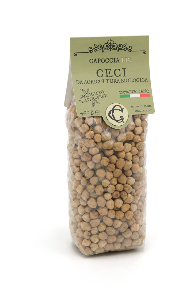 Ricchi di proteine e fibre, i ceci biologici Capoccia Bio sono un’esplosione di sapore e gusto. Per zuppe, insalate, minestre di qualità.